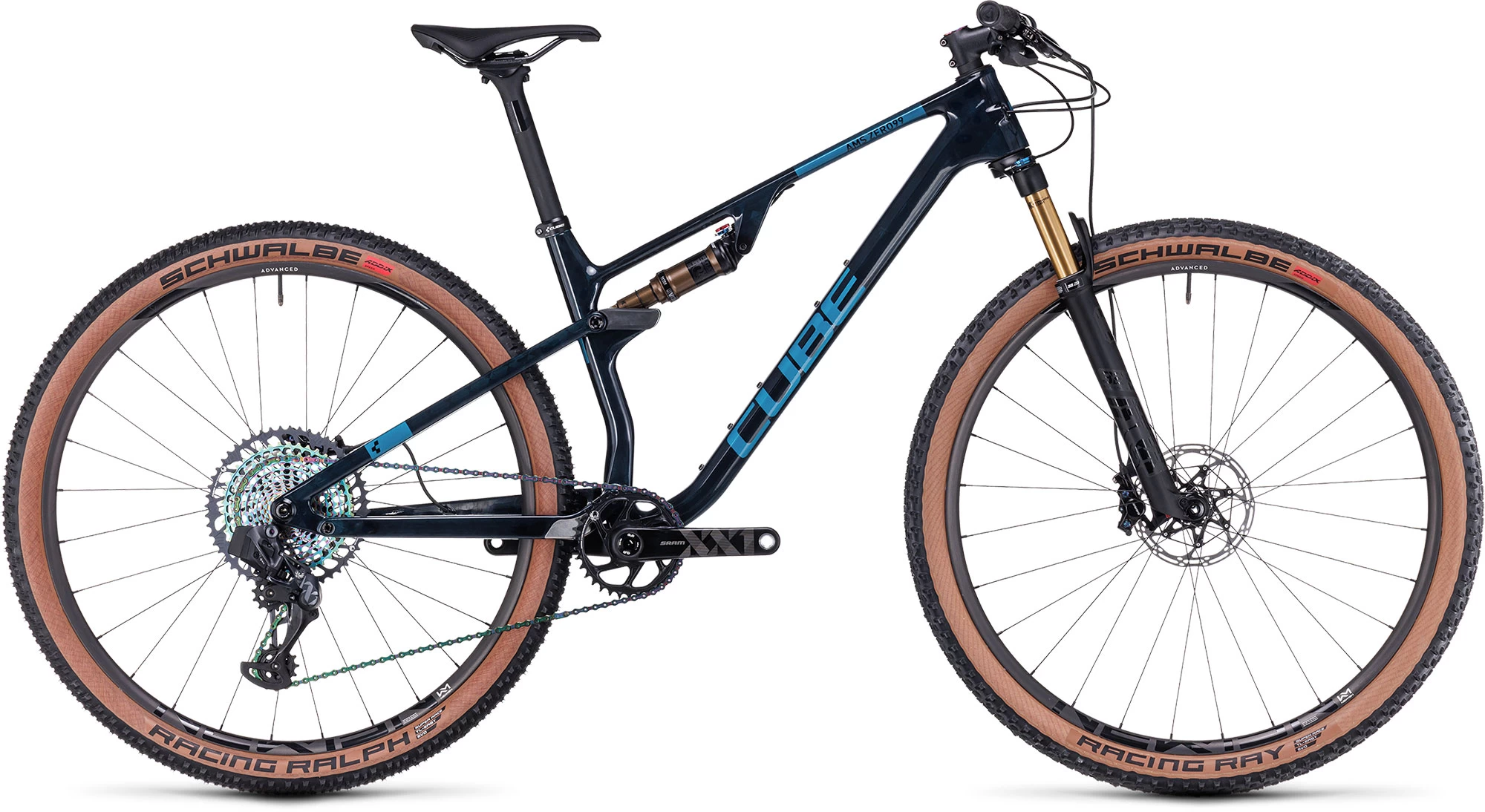 Wer Rennen fährt, weiß: Kompromisslose Racing-DNA ist das A und O! Deshalb hat CUBE das AMS ZERO99 C:68X SLT 29 auch mit ausgesuchten Fox Federungskomponenten mit 100 mm Federweg am Vorder- und Hinterrad ausgestattet – für top Spurtreue und Bodenkontakt. Außerdem mit der XX1 Eagle AXS 12-fach Schaltung von Sram, die kabelloses und unschlagbar präzises Gängewechseln garantiert. Volle Geschwindigkeitskontrolle ist das Spezialgebiet der hydraulischen Level Ultimate Rainbow Scheibenbremsen, ebenfalls von Sram. Und dank der ultraleichten Schwalbe Aerothan Schläuche wird jedes Quäntchen Power direkt und ohne Verluste in kraftvollen Vortrieb umgesetzt. Carbonkomponenten – darunter ein Carbonlaufradsatz – von Newmen machen das Set-up perfekt. Und jetzt kommst du!