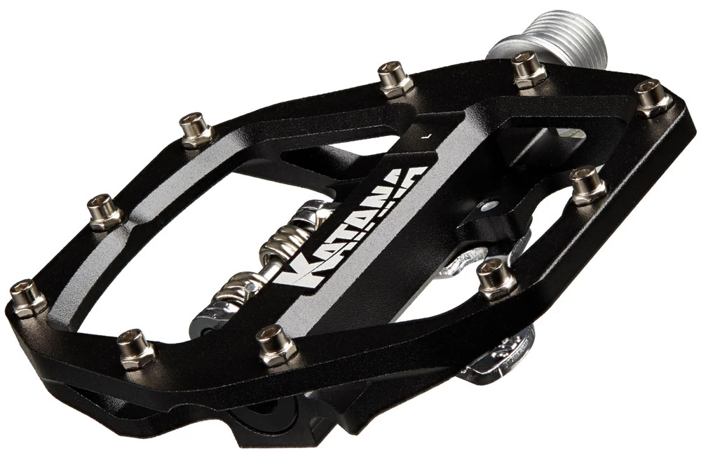 Die leichten Katana Catch Kombipedale mit extragroßer Trittfläche auf der Plattformseite haben einen CNC-gefrästen Aluminium-6061-Korpus und bieten höchsten Komfort mit und ohne Klick. Sei es als Midsize-Plattformpedal mit 10 Evo-Pins und 100 x 100 mm Trittfläche oder mit der zuverlässigen SPD-kompatiblen Klick-Bindung, mit den Catch Pedalen bringst du die Power auf die Straße oder den Waldweg. Die hochwertige Lagertechnik, mit der diese Kombipedale ausgestattet sind, garantiert eine lange Funktionsdauer und optimale Kraftübertragung.