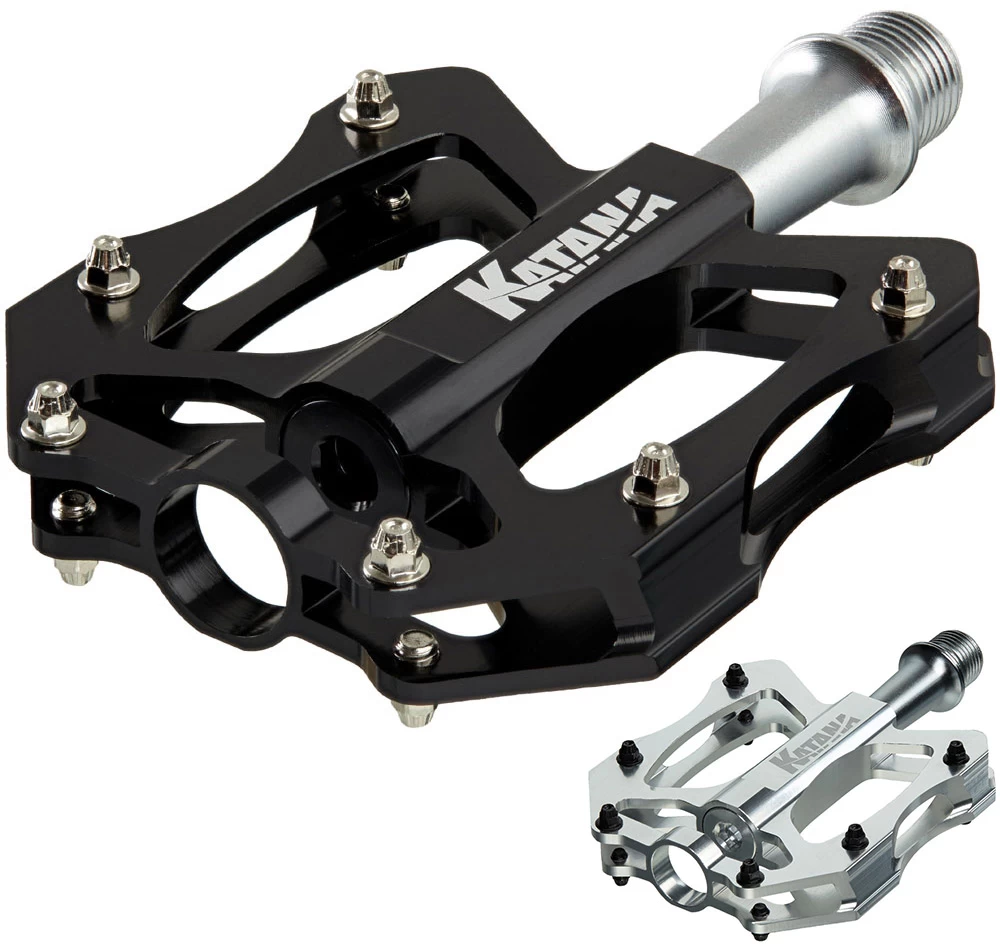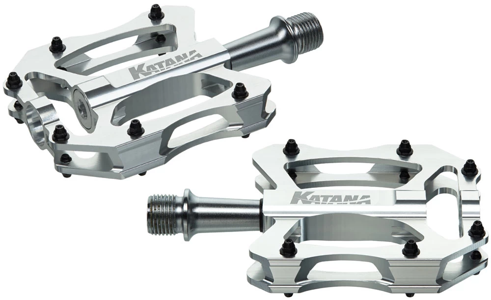 Die flachen Katana X7 S-Light Plattformpedale im Midsize-Format bestehen aus einem leichten robusten Aluminium-Korpus und sind jeweils mit 6 EVO-Pins pro Seite für den nötigen Grip auf allen Trails versehen. Der leichte Alu-Pedalkörper und die CNC-gefrästen Achsen sorgen in Verbindung mit hochwertigen Kugellagern für eine hohe Lebensdauer in jedem Einsatzbereich, selbst unter härtesten Bedingungen.