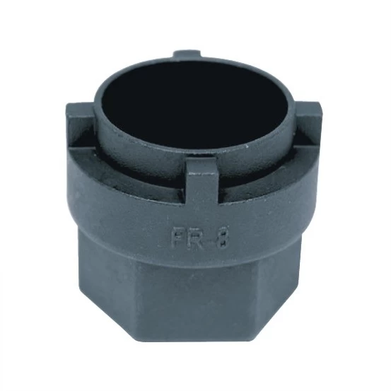 Zahnkranzabzieher aus gehärtetem Stahl mit solidem 1″ Sockel für Abzieherhebel oder Schraubstock. Die dünnwandige Ausführung erlaubt den Einsatz ohne zuvor Konus oder Kontermutter zu entfernen. Das FR-8 dient zur Demontage der 4-Nuten-Freiläufe von “ Flip-Flop“ -BMX-Naben mit 30×1-mm-Gewinde.