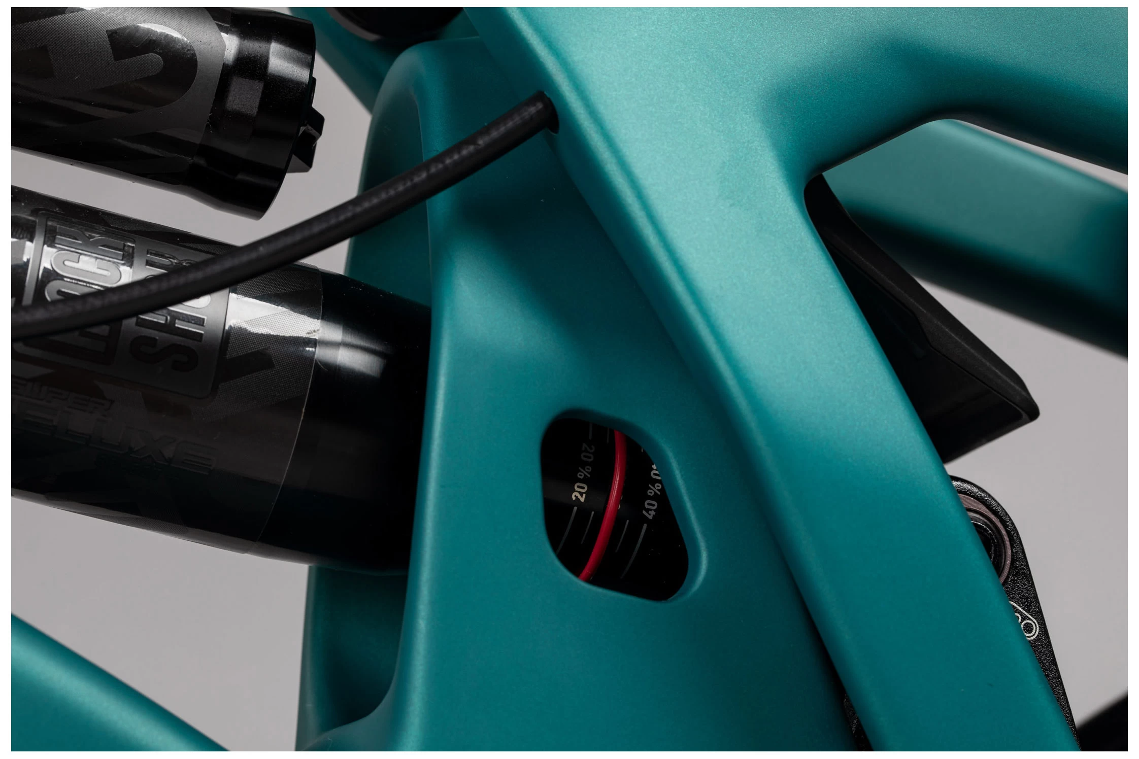 Für das Modelljahr 2023 wurde der Rahmen von Santa Cruz überarbeitet und bietet erstmals eine „Glovebox“ auf der Oberseite des Unterrohrs. Außerdem gibt es ein Sichtfenser im unteren Teil des Sitzrohrs, durch welches der SAG des Dämpfers problemlos eingestellt werden kann. Kleine Veränderungen der Geometrie durch den bewährten Flip Chip bleiben natürlich weiterhin möglich.