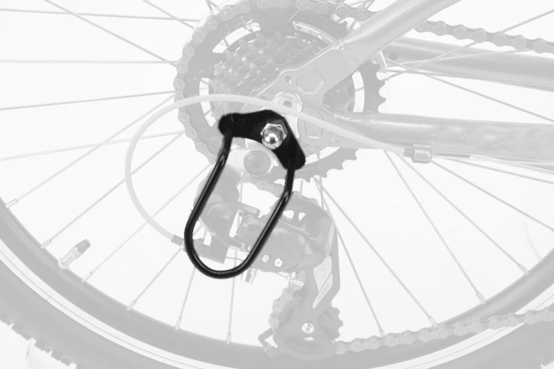 Kurzer Stahlbügel-Schaltwerkschutz von Radon, der am Rahmen oder der Achsverschraubung montiert wird. Er umfaßt wie ein Schutzkäfig das Schaltwerk und schützt es bei Stürzen oder Transport vor Beschädigungen.