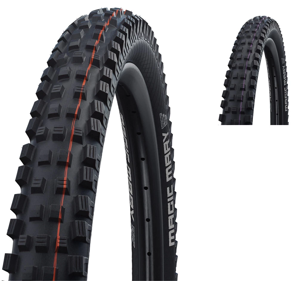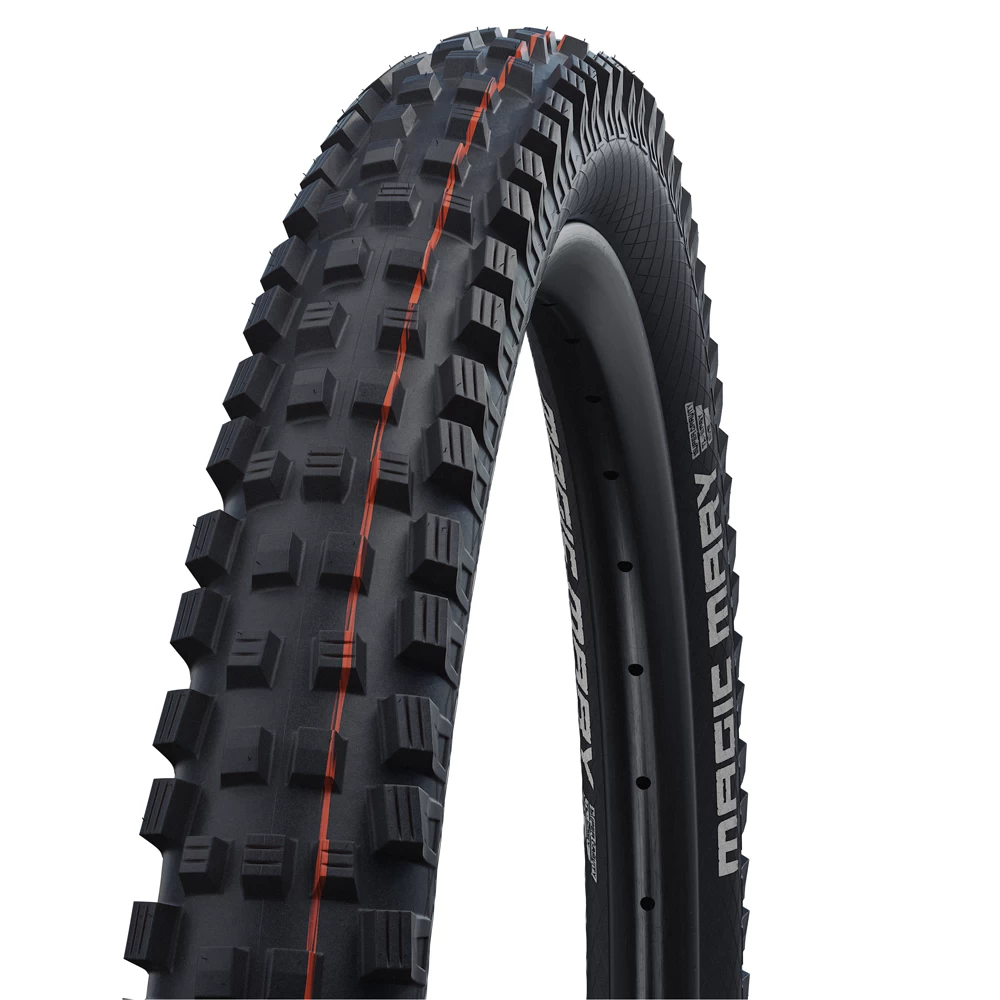 Schwalbe Magic Mary Evo Super Gravity 29″ Addix E-50 2,40 SnakeSkin TLEasy Soft Streifen orange – schwarz